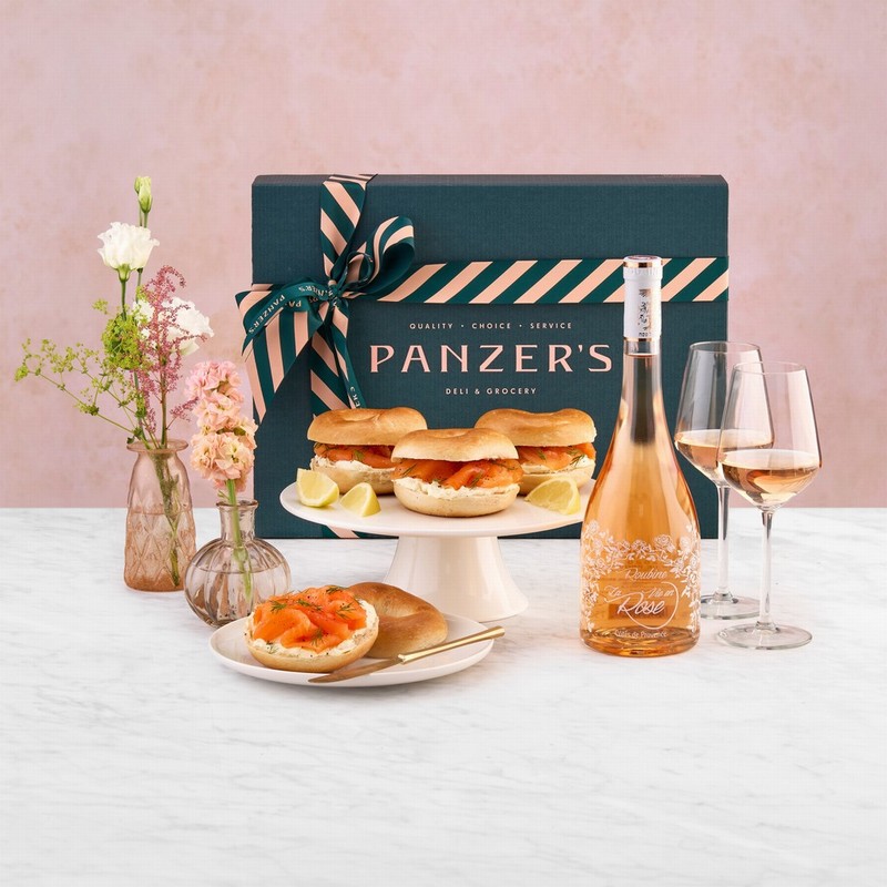 Bagels are the way to their hearts! Our gift hamper includes 4 of our famous bagels, with freshly sliced smoked salmon and New York style cream cheese. And a bottle of one of our favourite roses: the blush-coloured Chateau Roubine, full of fresh cherry, strawberry and peach on the nose and a dash of honeysuckle.