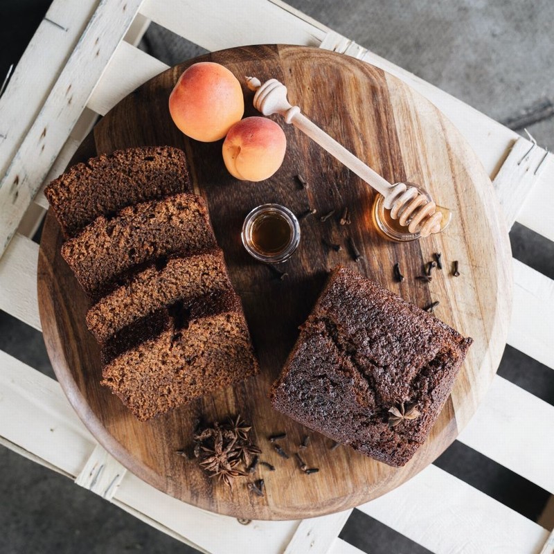 Flour, Cinnamon, Ginger, Mixed Spices, Baking Powder, Bicarbonate Soda, Eggs, Sugar, Honey, Sunflower Oil, Coffee, Apricot Jam.