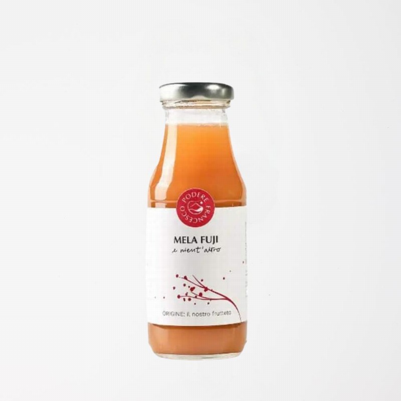By drinking it you can savor the fine grains of the Apple. The juice has a rather sweet taste without any added sugar, this is because Fuji Apples are grown at the foot of the hill, where the temperature difference between day and night is higher: a climatic condition which gives them more sweetness.